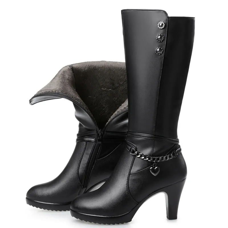 Ladies winter shoes, Woman boots, high-heeled Shoes, Genuine Leather Shoes, motorcycle boots, thick Shoes, Warm Ladies Shoes, winter boots, riding Boot