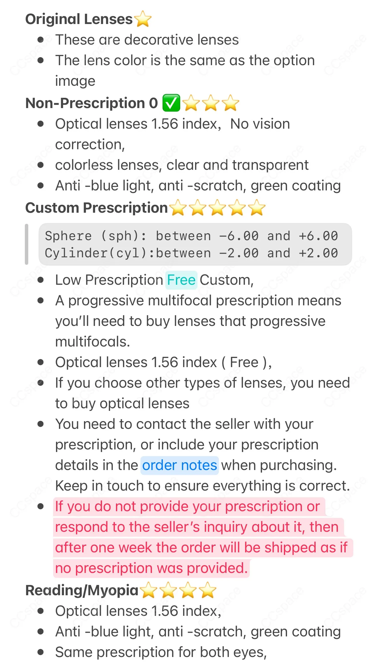 5. You need to contact the seller with your prescription, or include your prescription details in the order notes when purchasing. Keep in touch to ensure everything is correct.