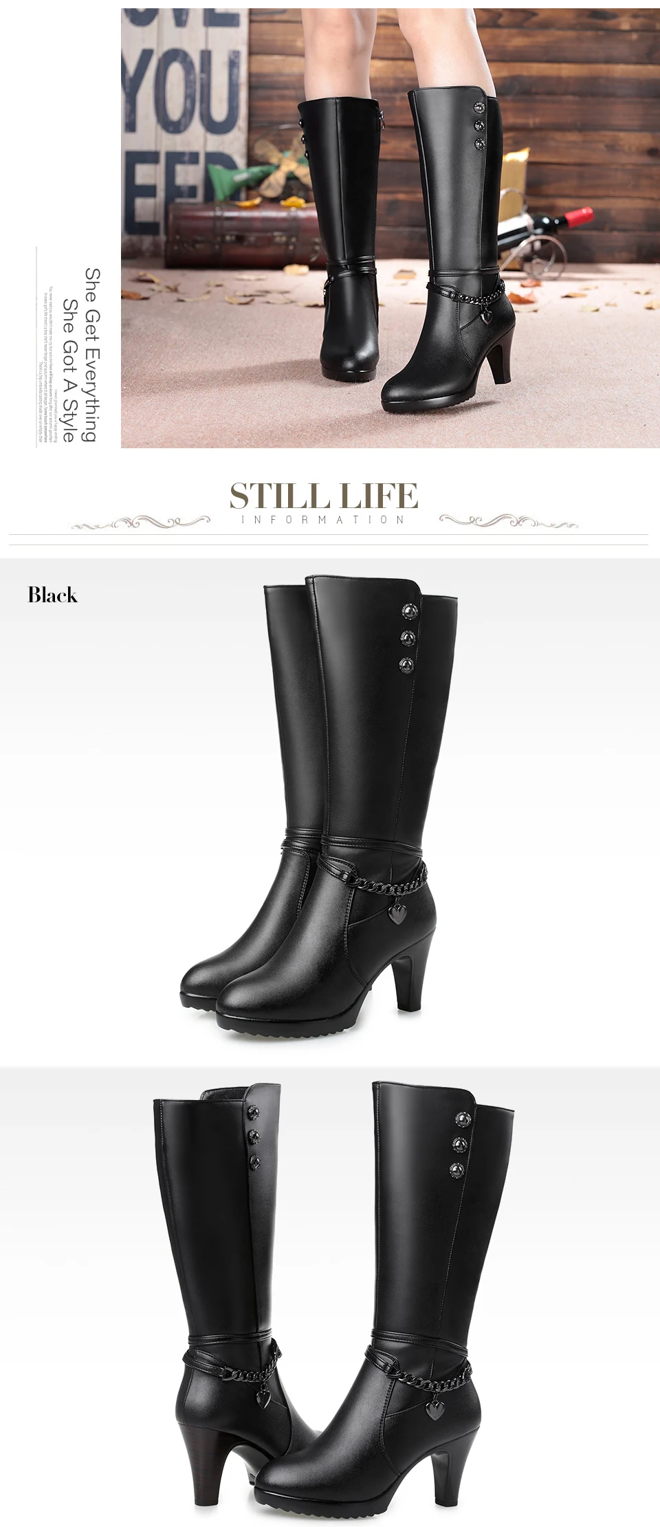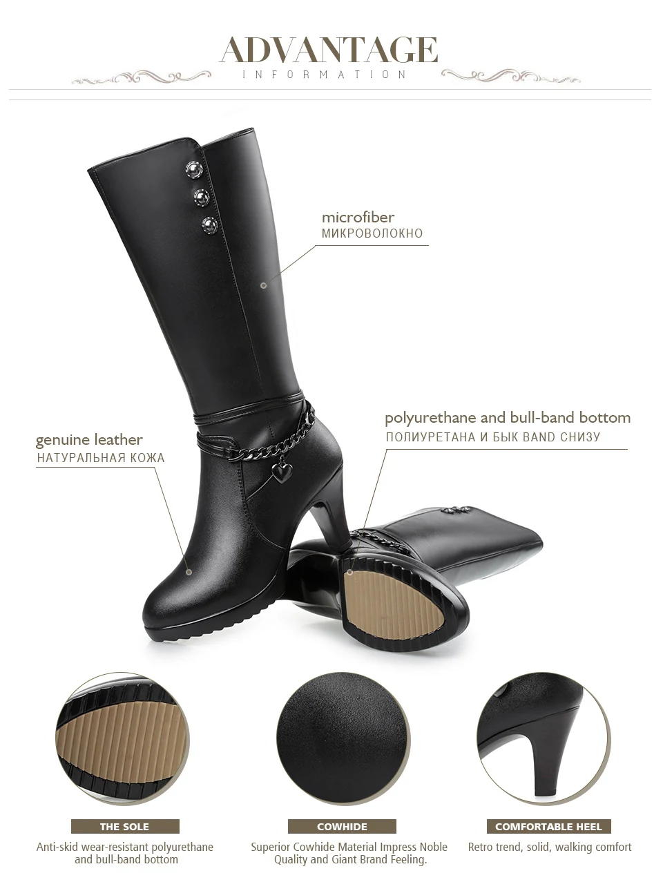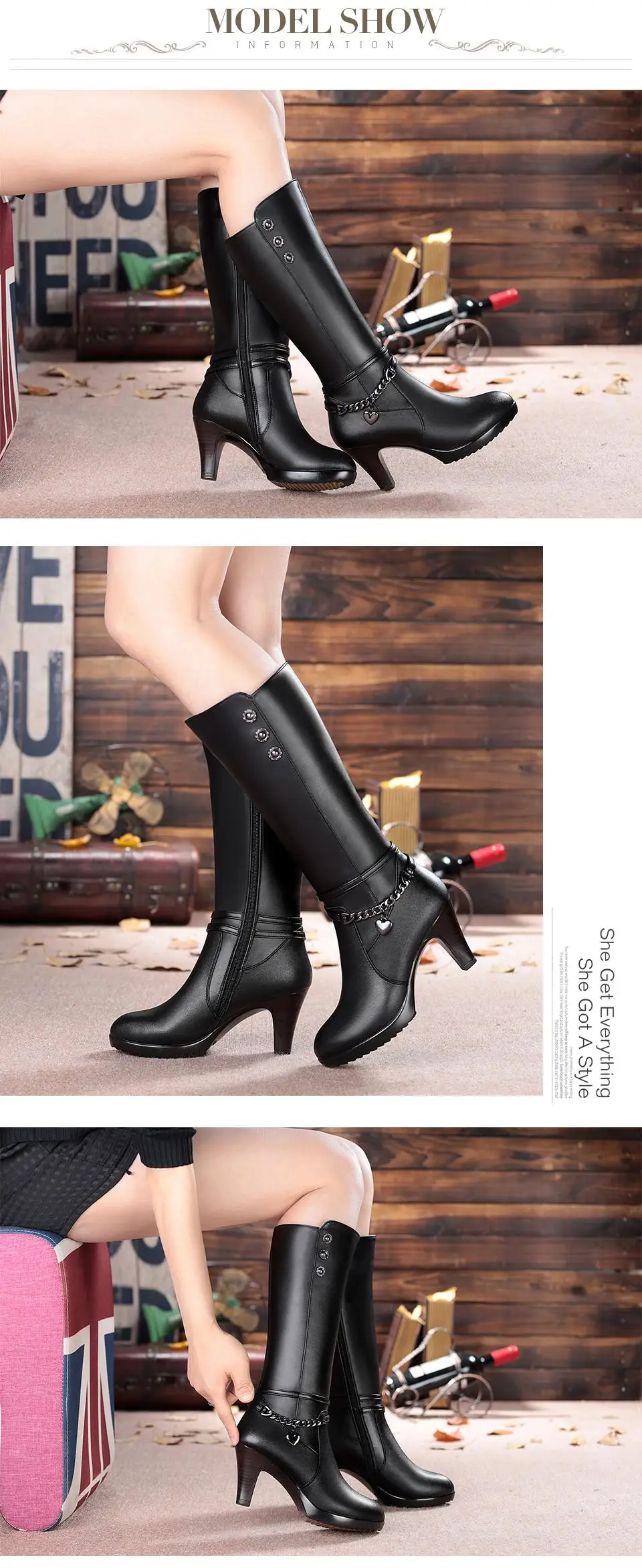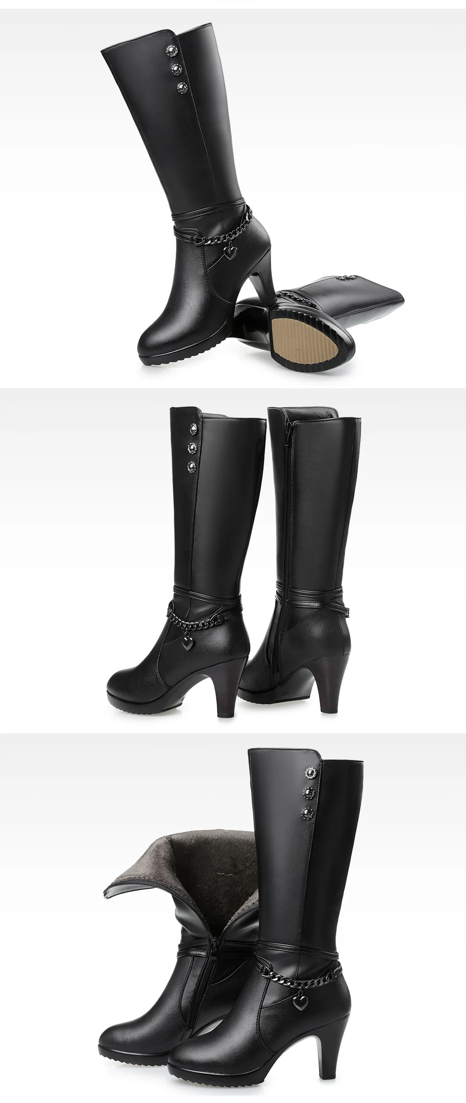 Ladies winter shoes, Woman boots, high-heeled Shoes, Genuine Leather Shoes, motorcycle boots, thick Shoes, Warm Ladies Shoes, winter boots, riding Boot