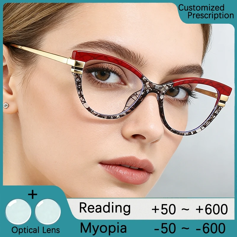 Luxury Cat Eye Reading Glasses Woman Blue Light Blocking Women’s Eyepieces Optical Lenses With Recipe Eyewear For Vision