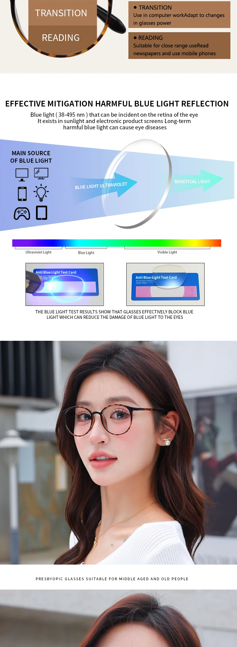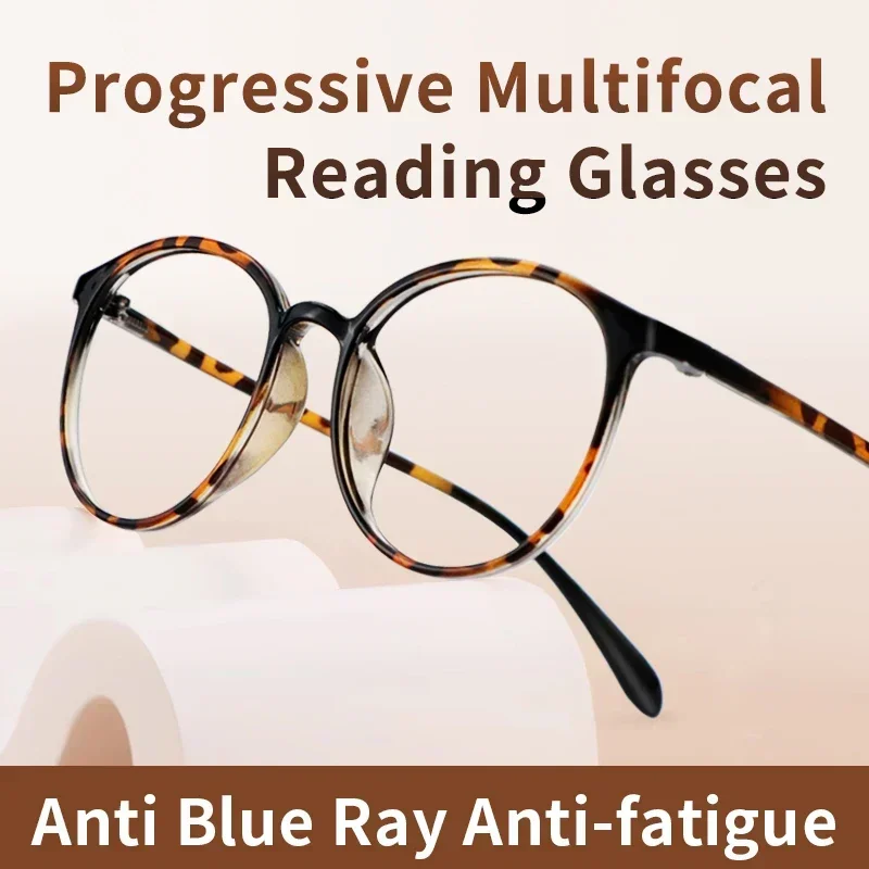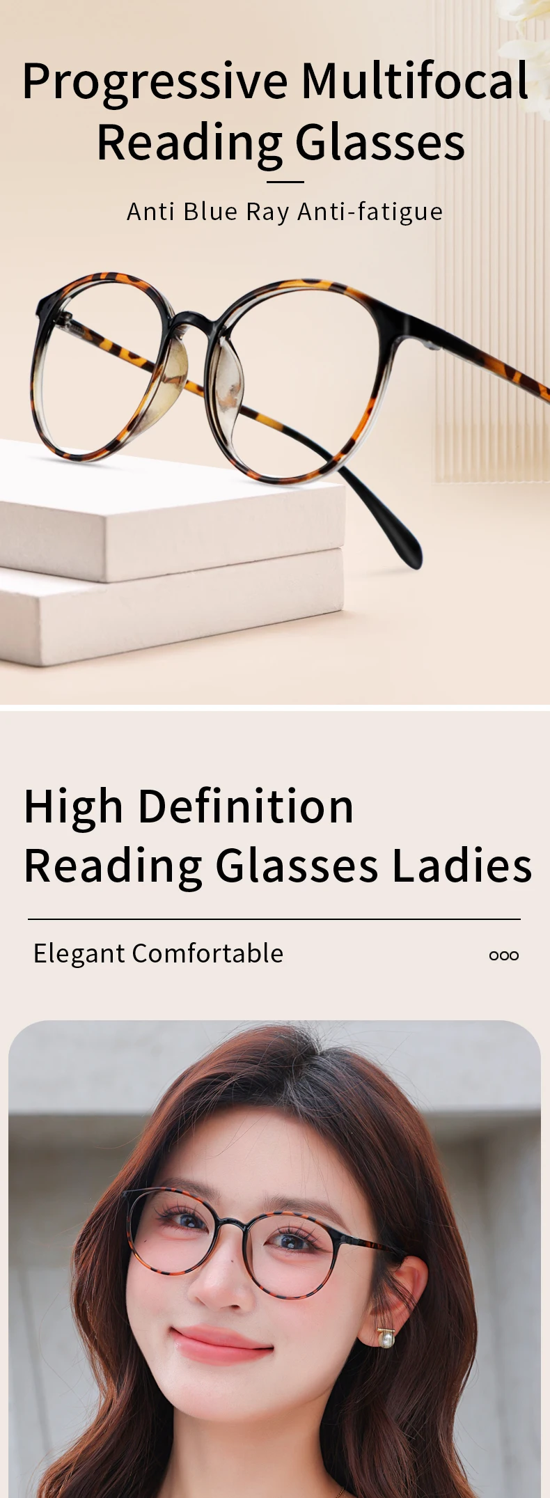 Progressive Multifocal Reading Glasses Women Anti Blue Ray Anti-fatigue Presbyopia Eyeglasses Computer Readers+1.0 To +4.0