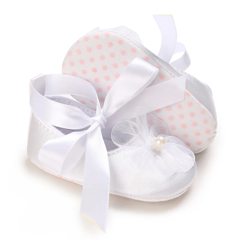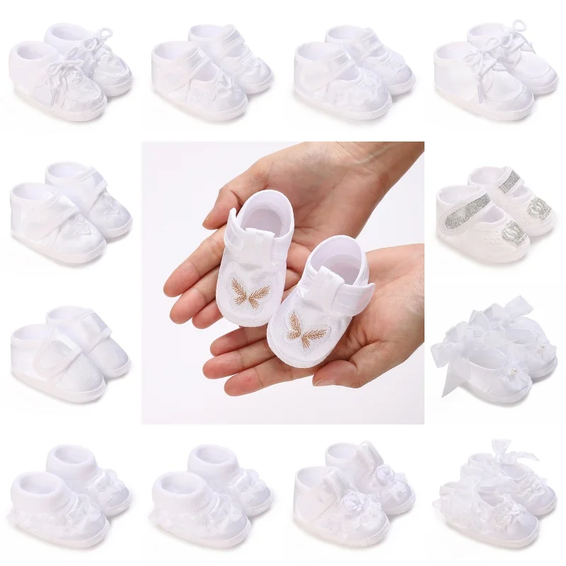 White Newborn Boy And Girl’s First Pair Of Dipping Shoes Soft Soled Walking Shoes Cute Cartoon Bow Multiple Styles -9CM/10CM