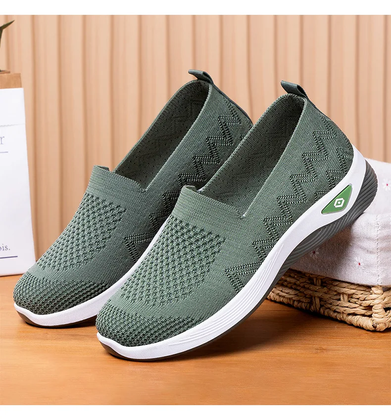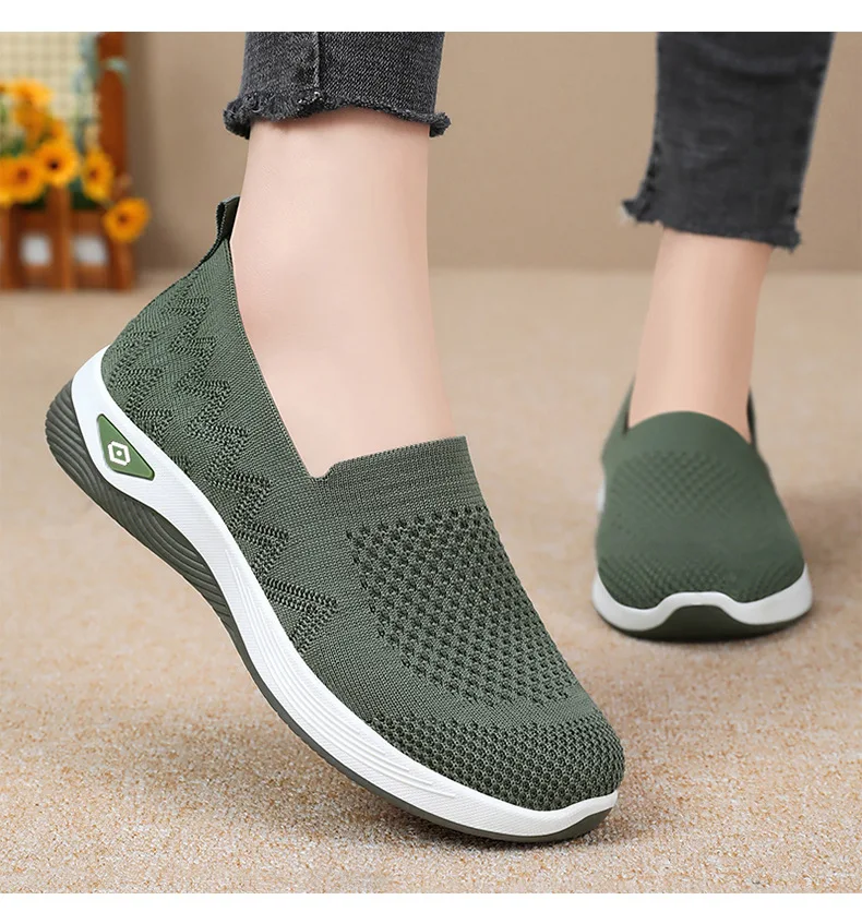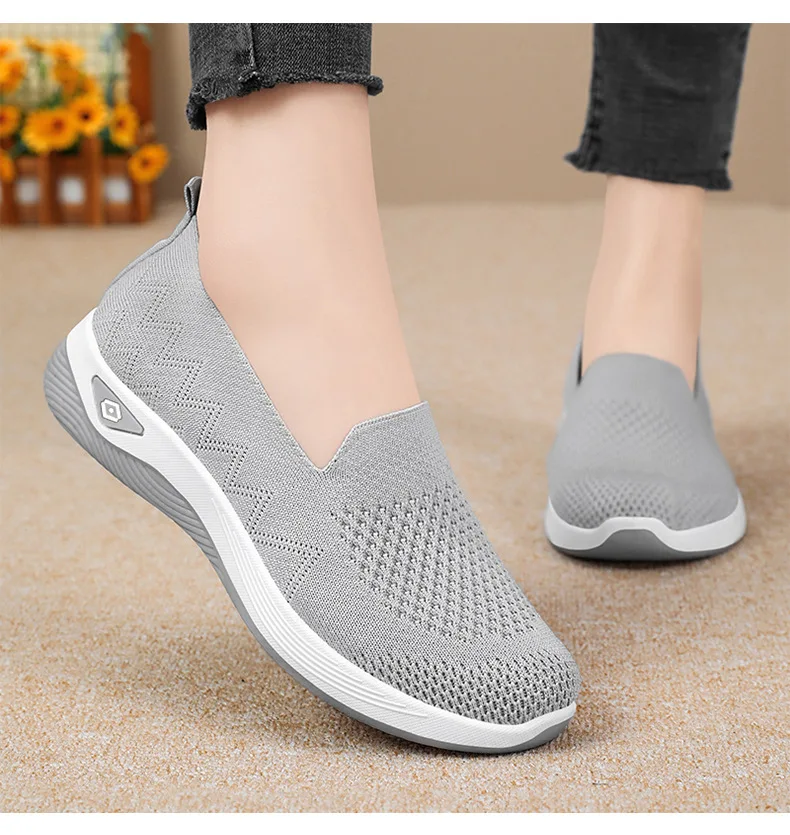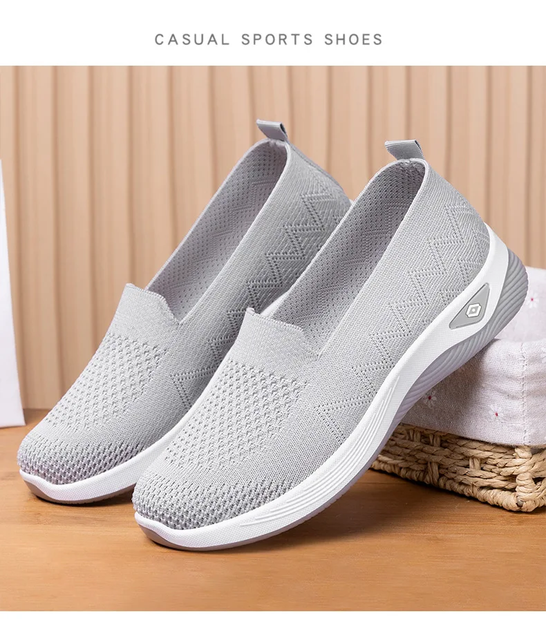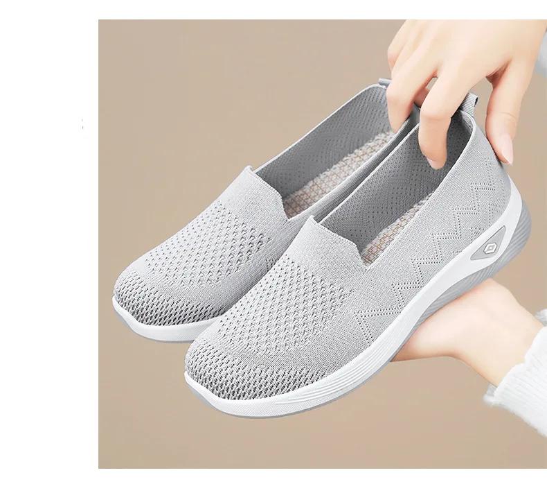 Women’s Solid Color Breathable Sneakers, Soft Sole Lightweight Slip On Walking Shoes, Low-top Knitted Casual Shoes