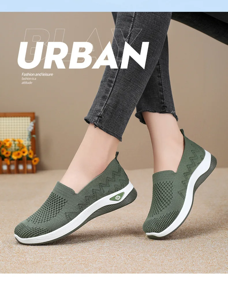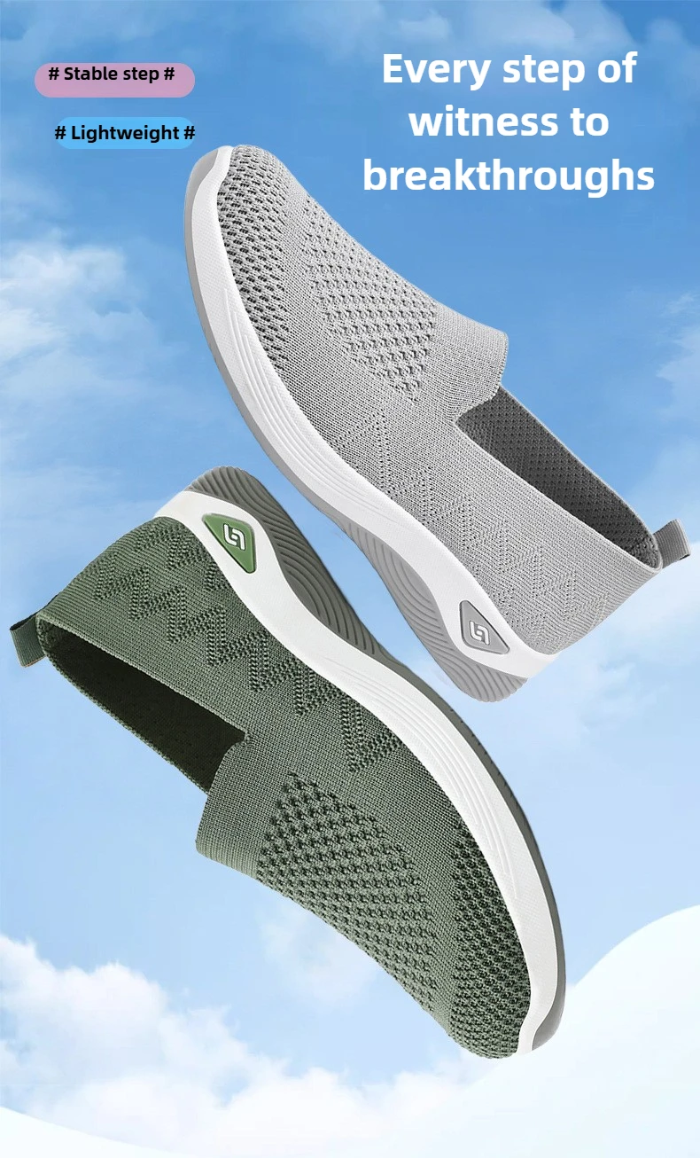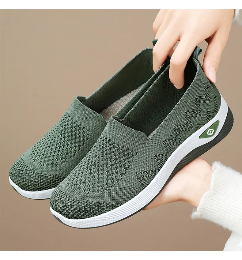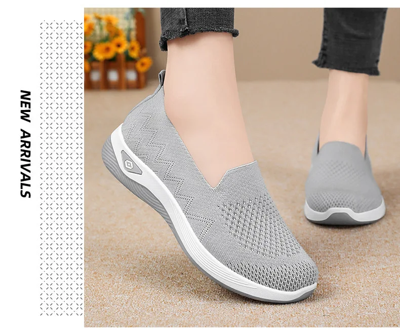 Women’s Solid Color Breathable Sneakers, Soft Sole Lightweight Slip On Walking Shoes, Low-top Knitted Casual Shoes